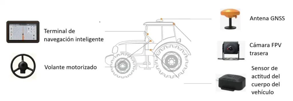Un piloto automático es un sistema electrónico que controla la dirección del vehículo agrícola —tractor, cosechadora, pulverizadora o trasplantadora— utilizando señales GNSS (GPS avanzado) y sensores de precisión.